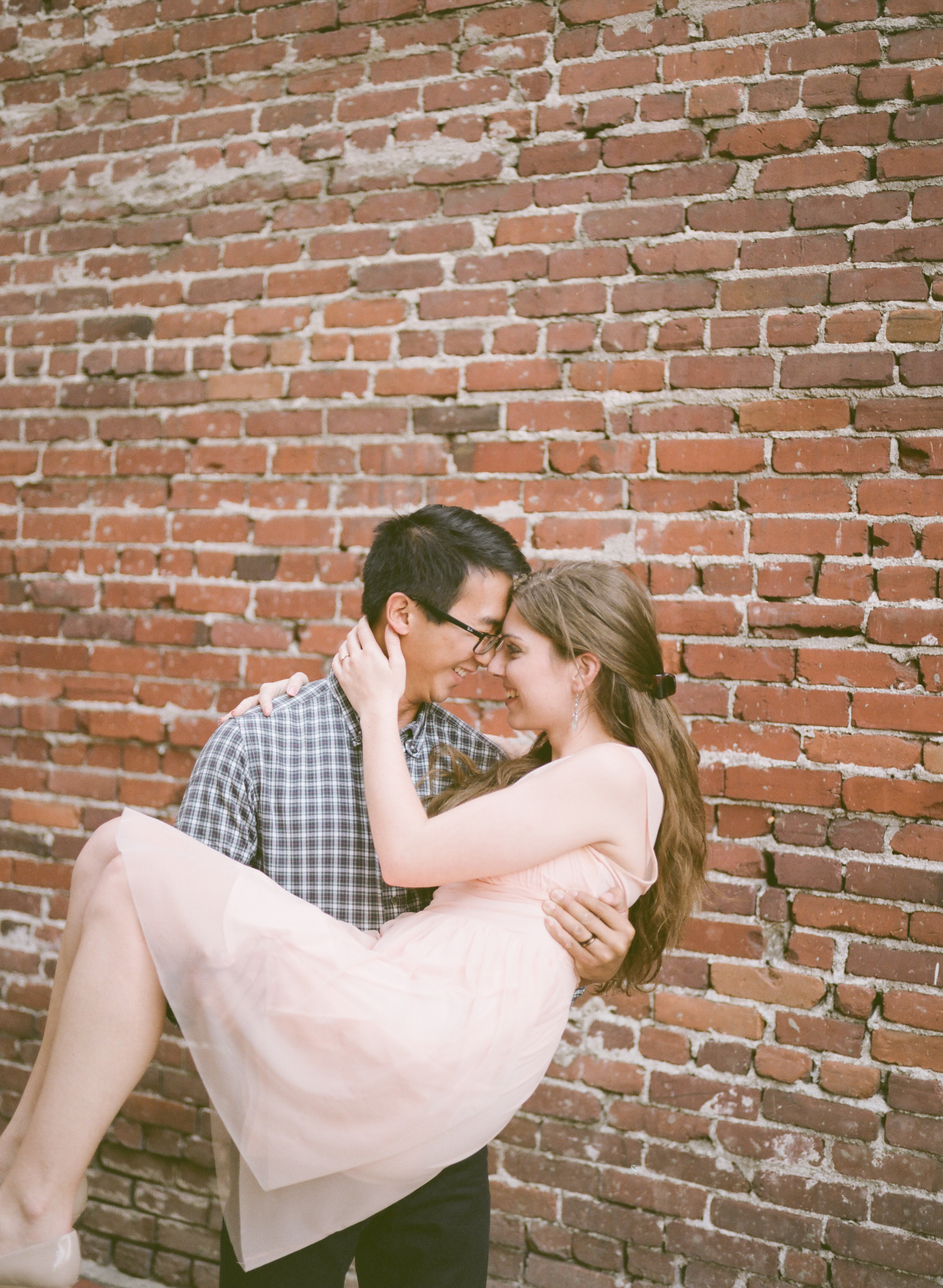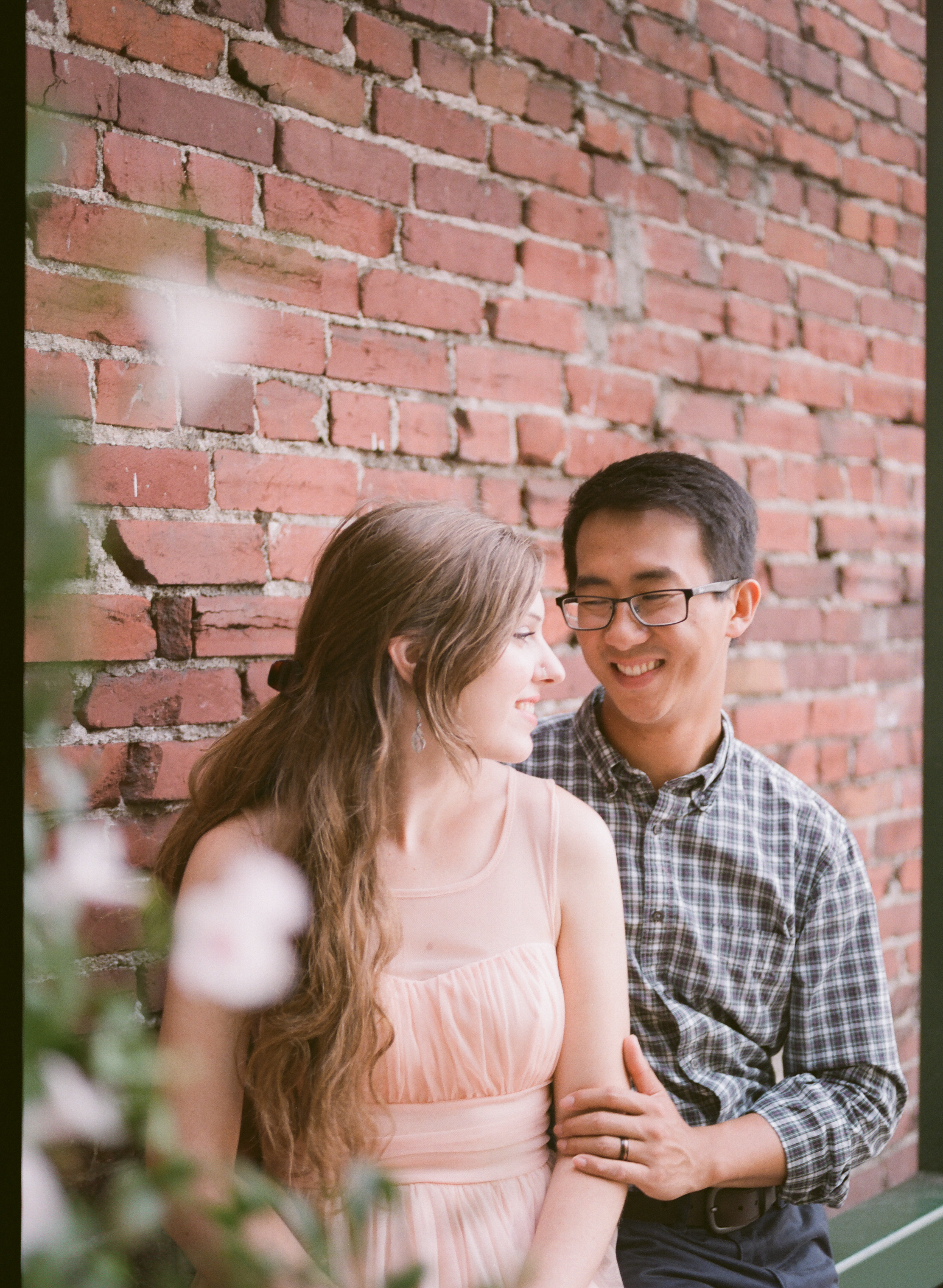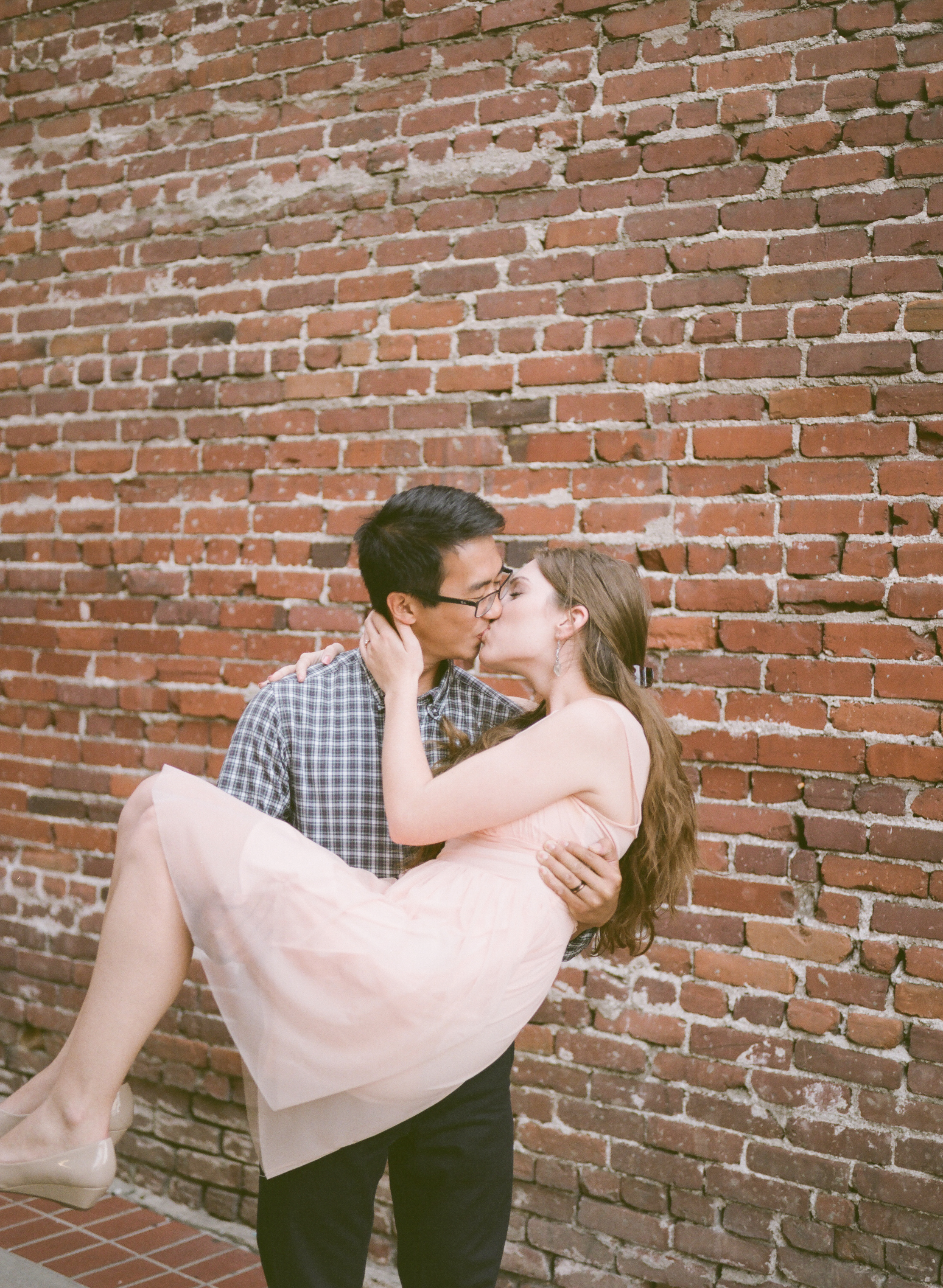 What a sweet engagement session! I love those in front of the brick wall and that pink dress is adorable! Great work!