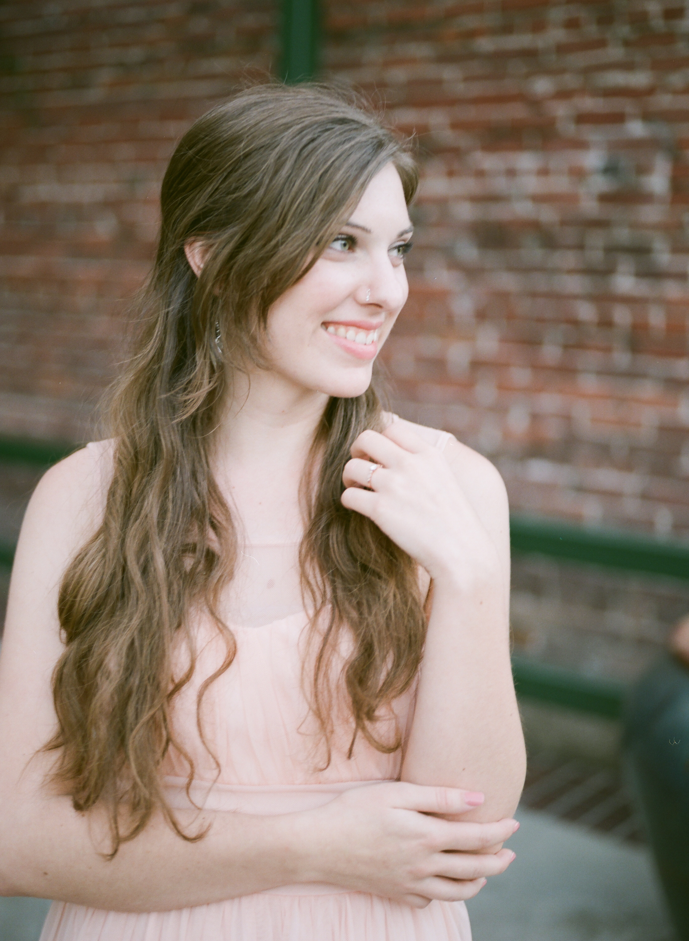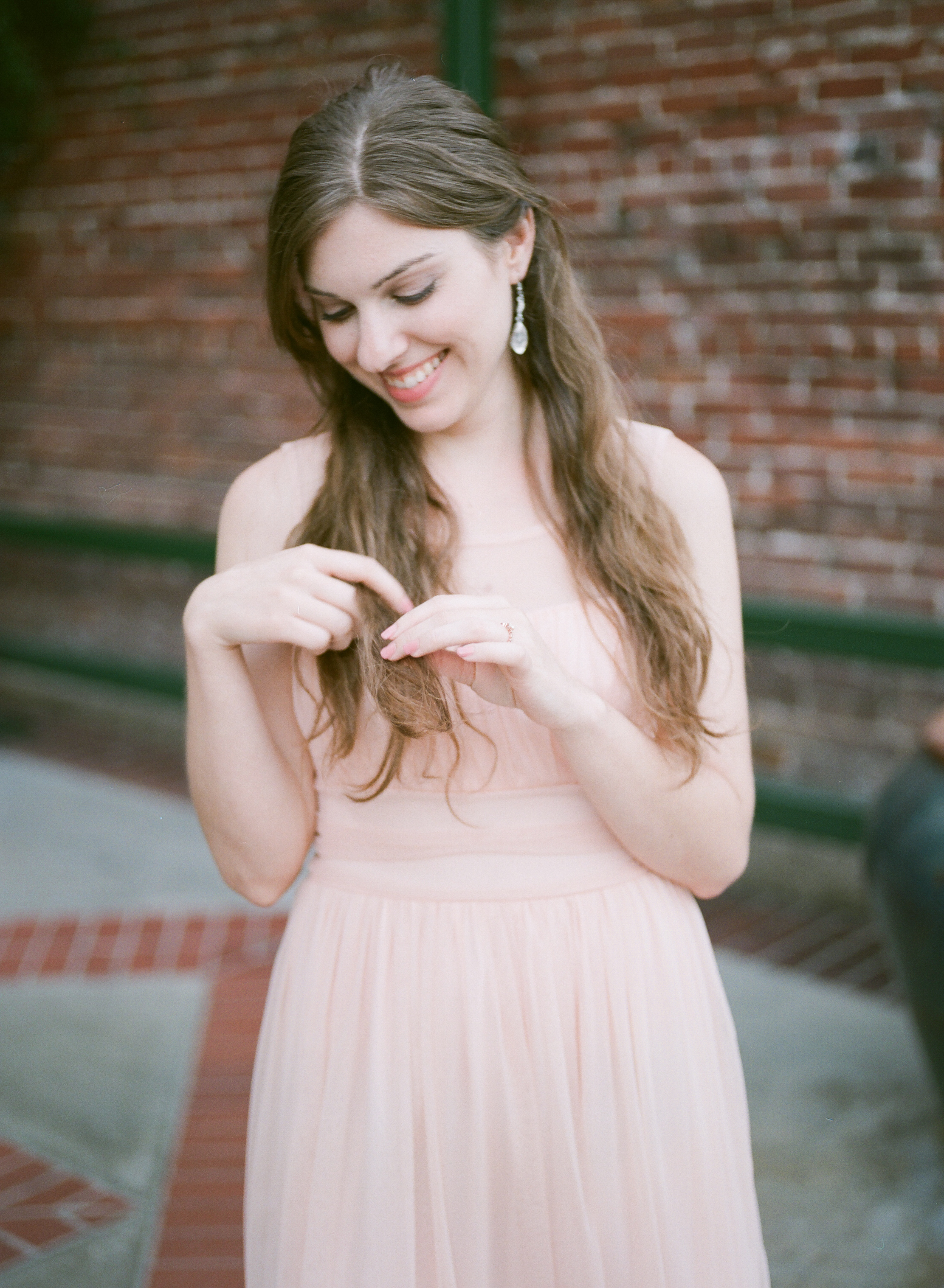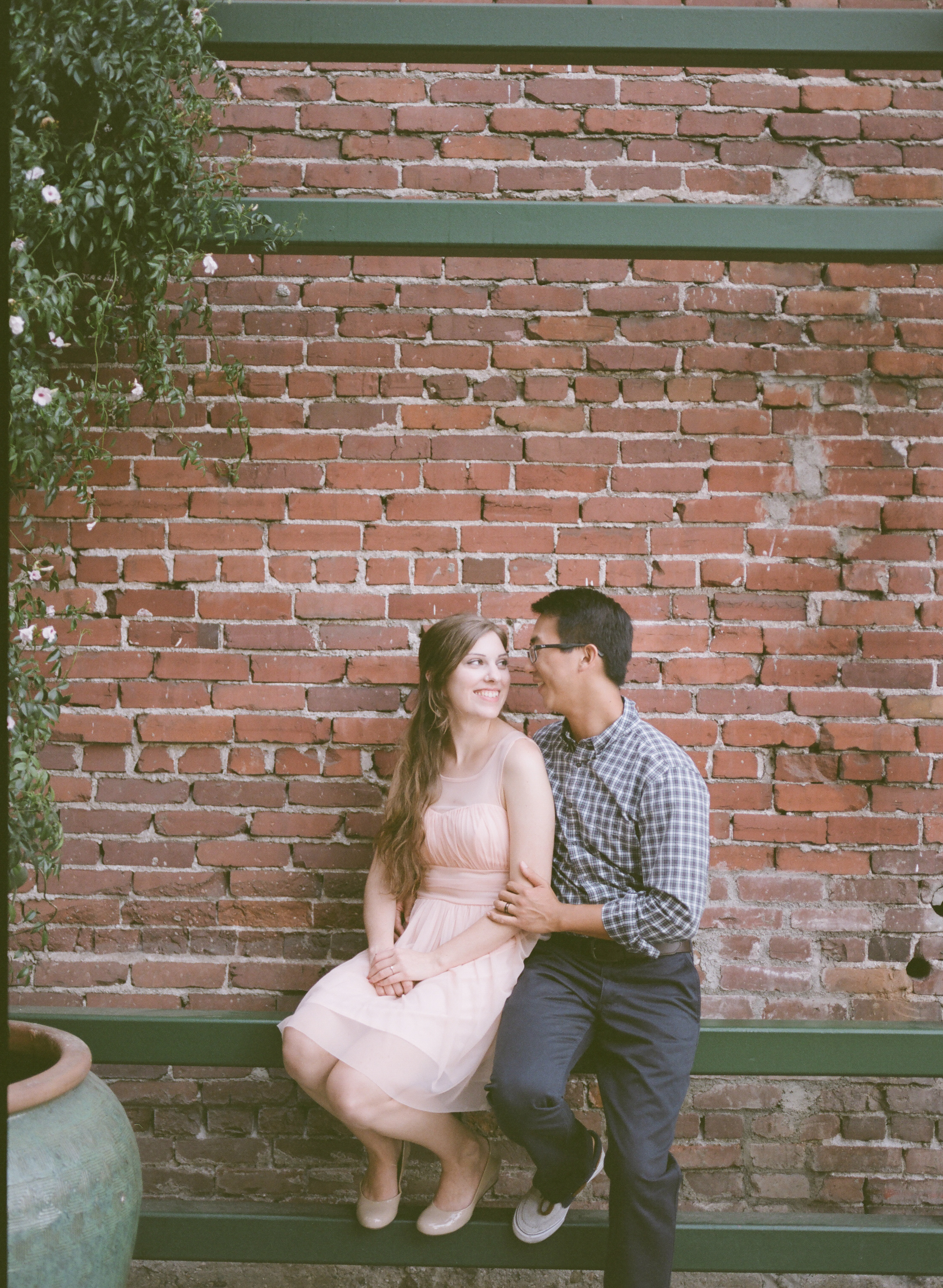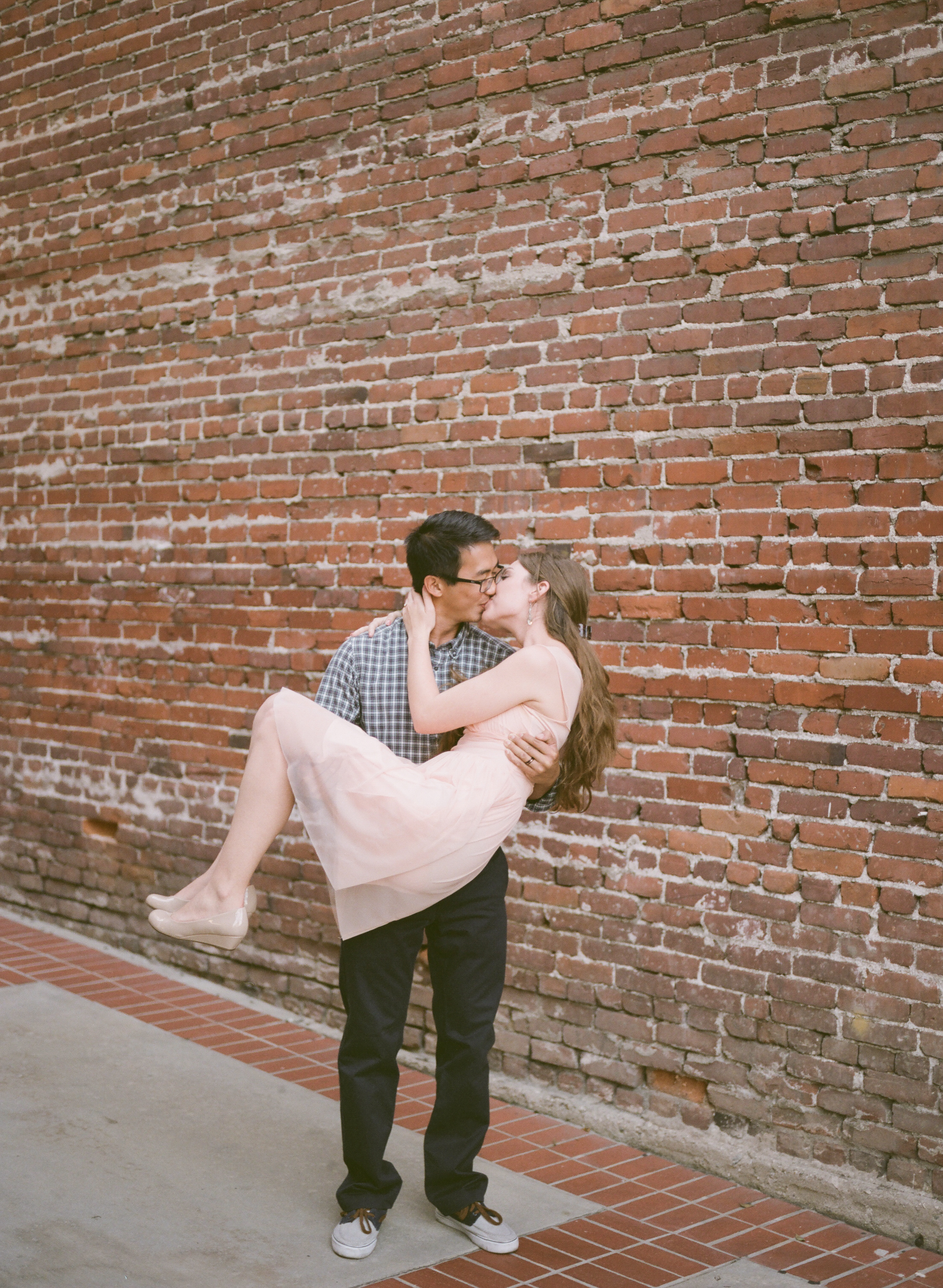 What a sweet engagement session! I love those in front of the brick wall and that pink dress is adorable! Great work!