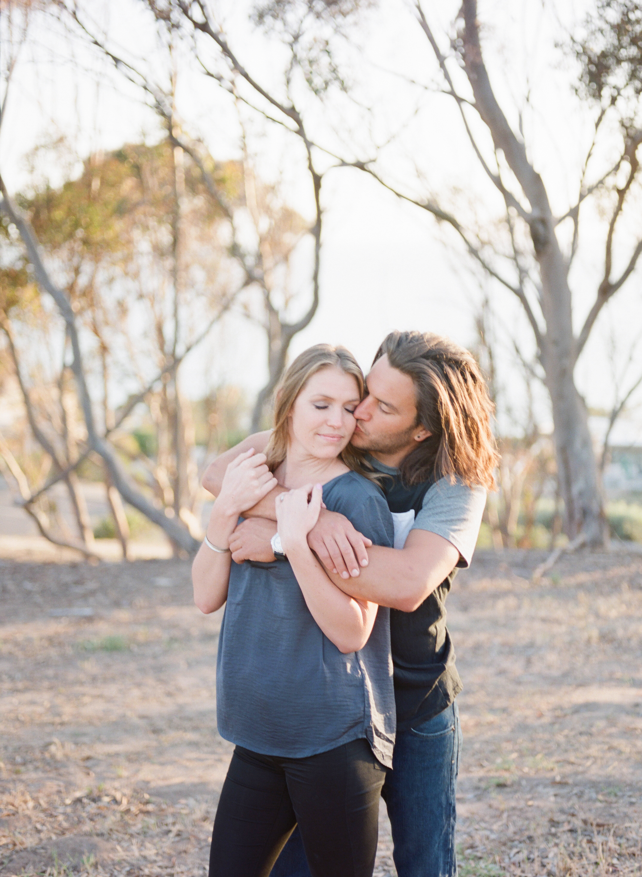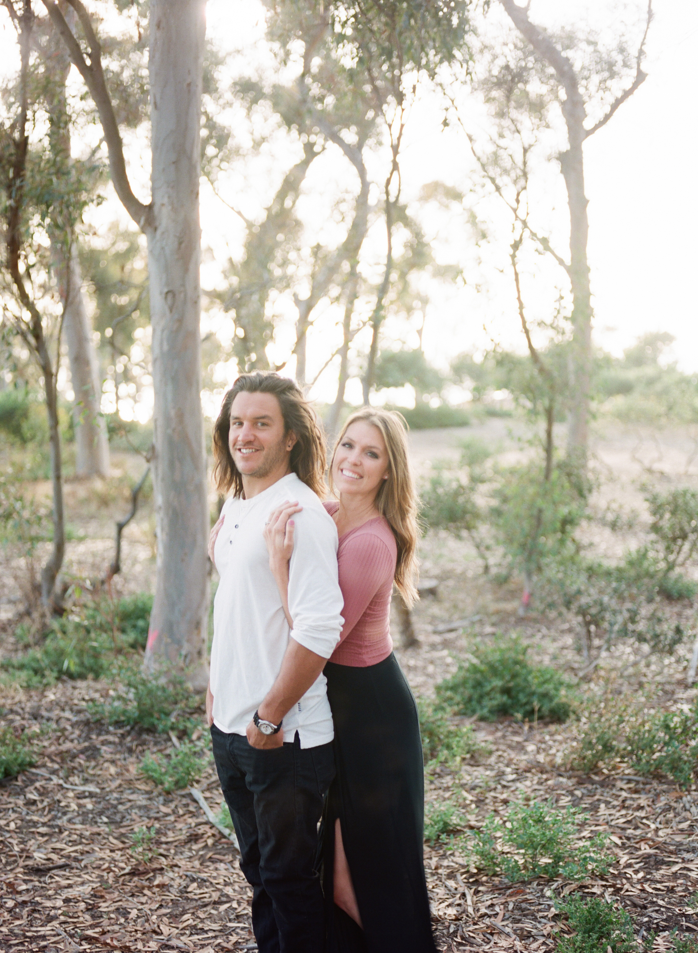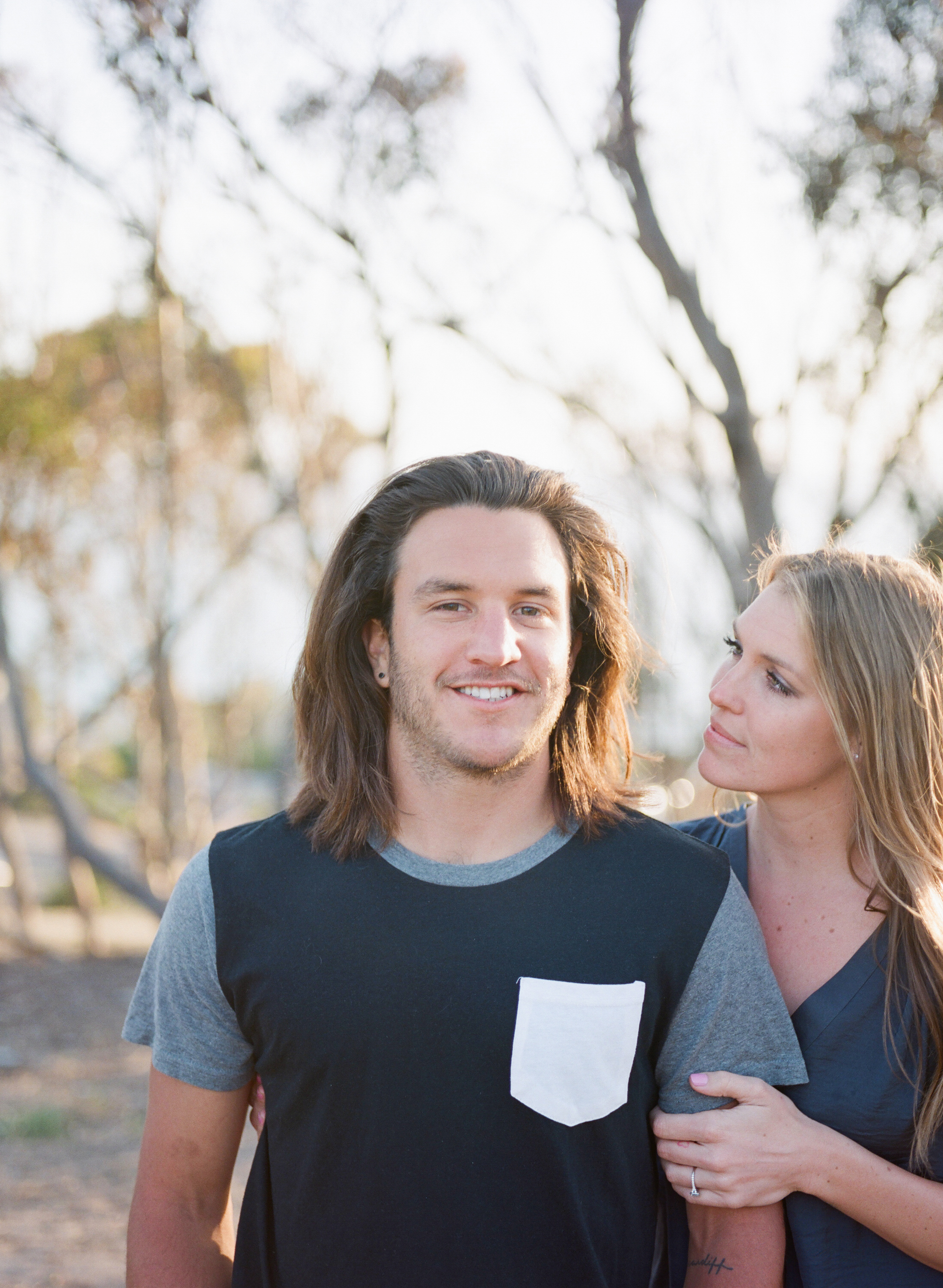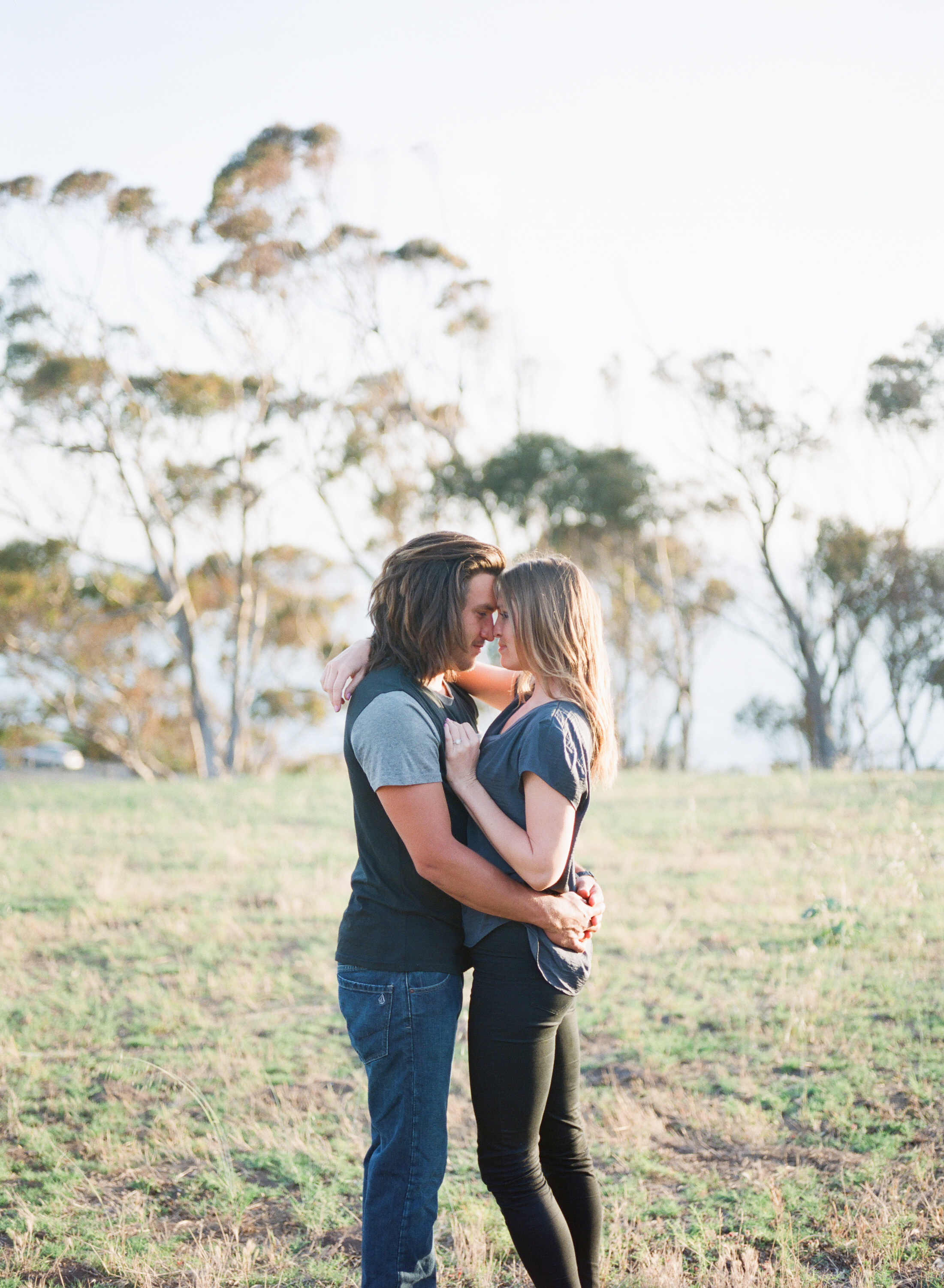 When we were originally supposed to do Katie and Brian’s engagement session, the weather decided not to be cooperative, and we got rained out! So we rescheduled for 2 weeks later, and I am so glad we did. We had the perfect setting. It was sunny and beautiful in La Jolla! Katie had told me about how Brian proposed to her on the beach, their wedding was going to be on the beach… but she didn’t want the engagement photos on the beach. So, we went up to a cliff, above Scripps Pier, and found a little forest and field. It was perfect.