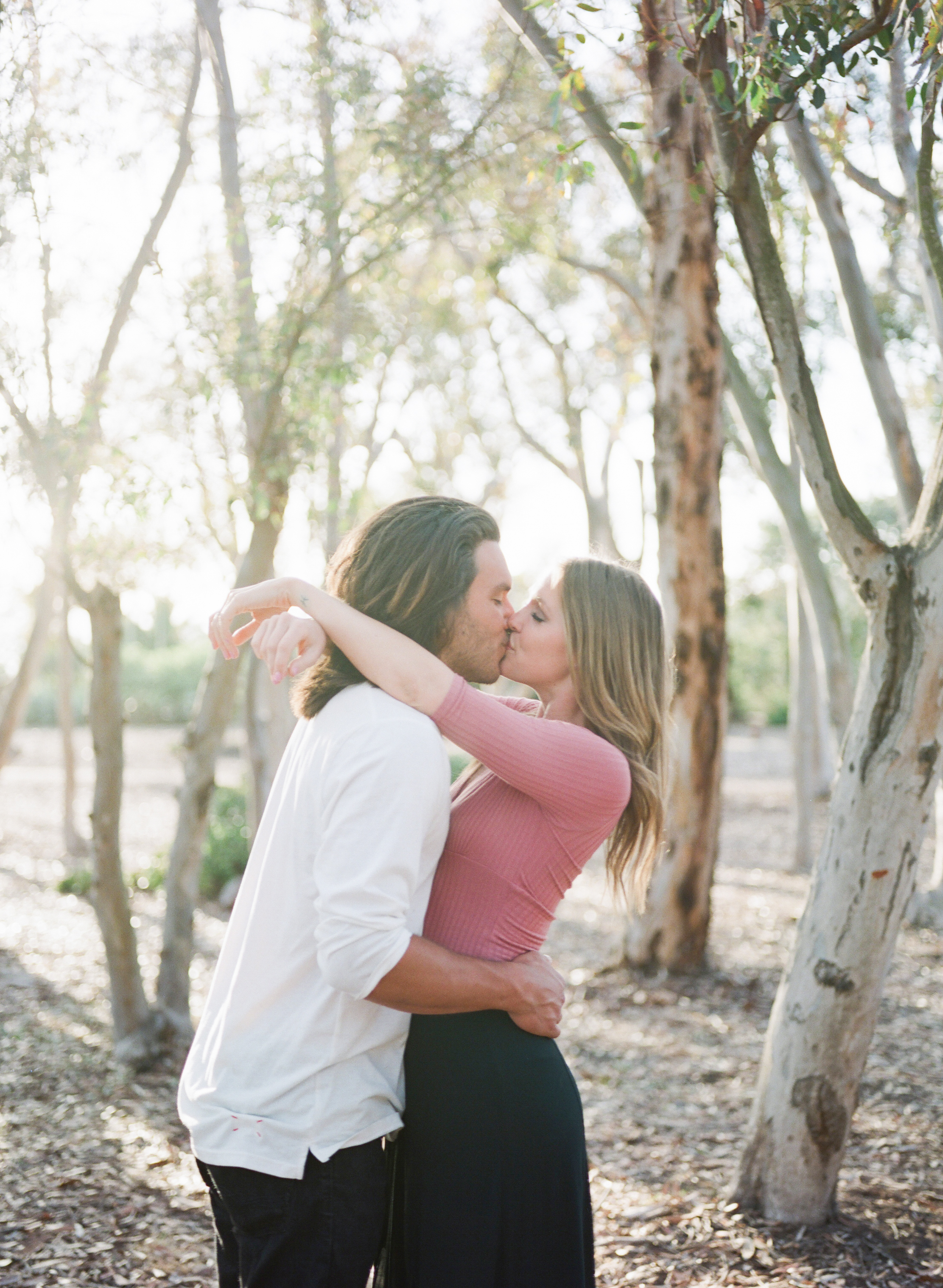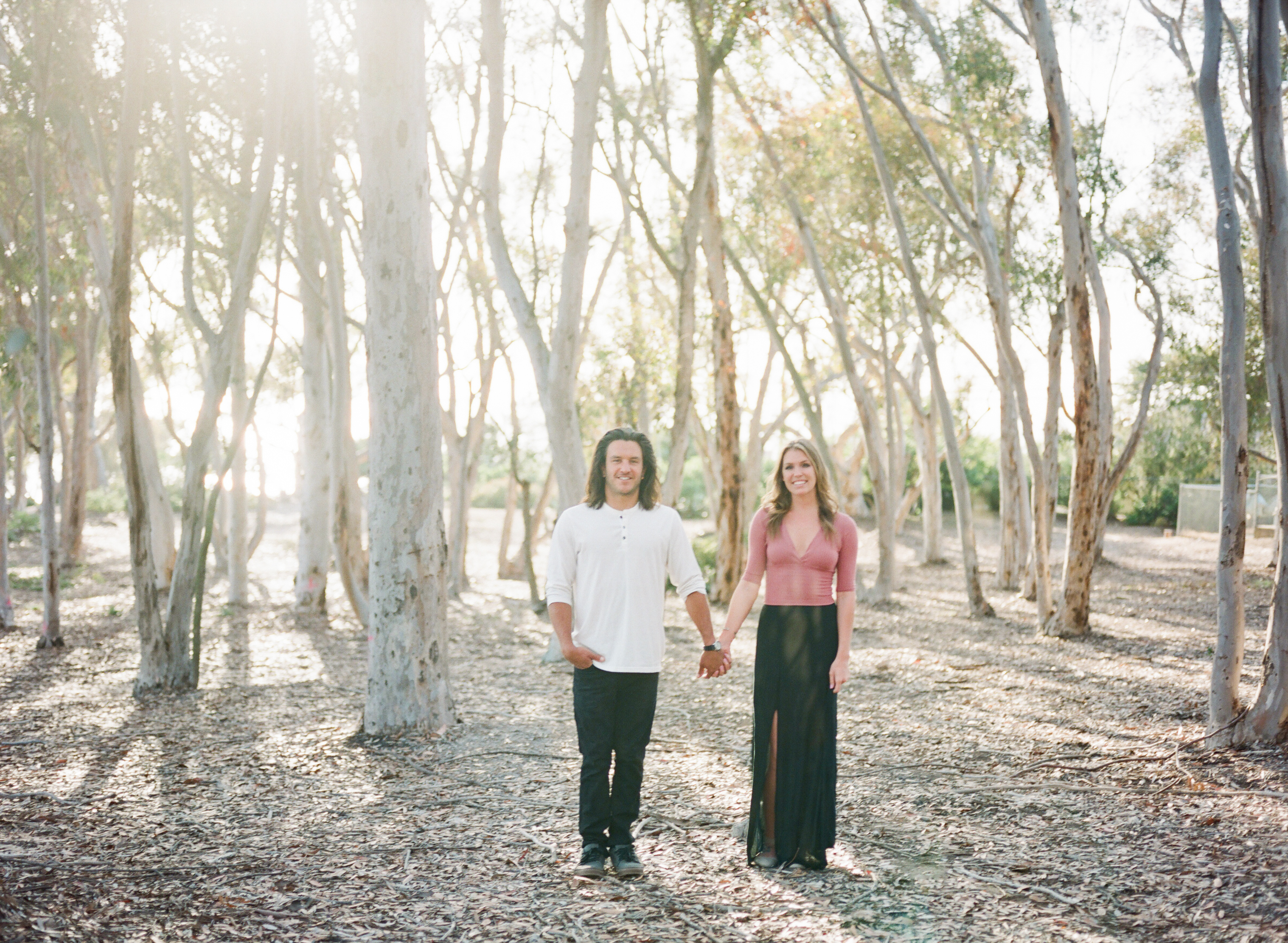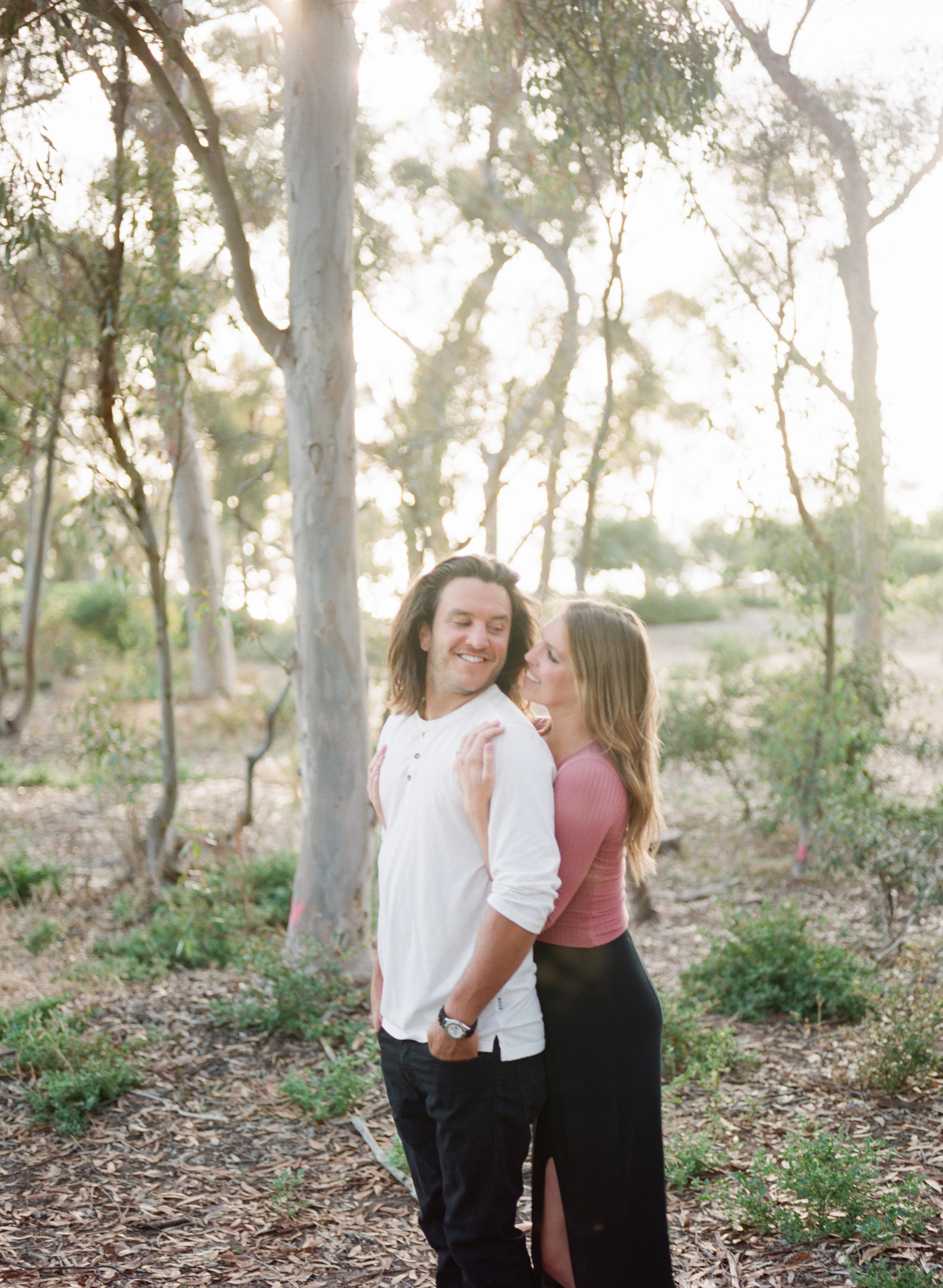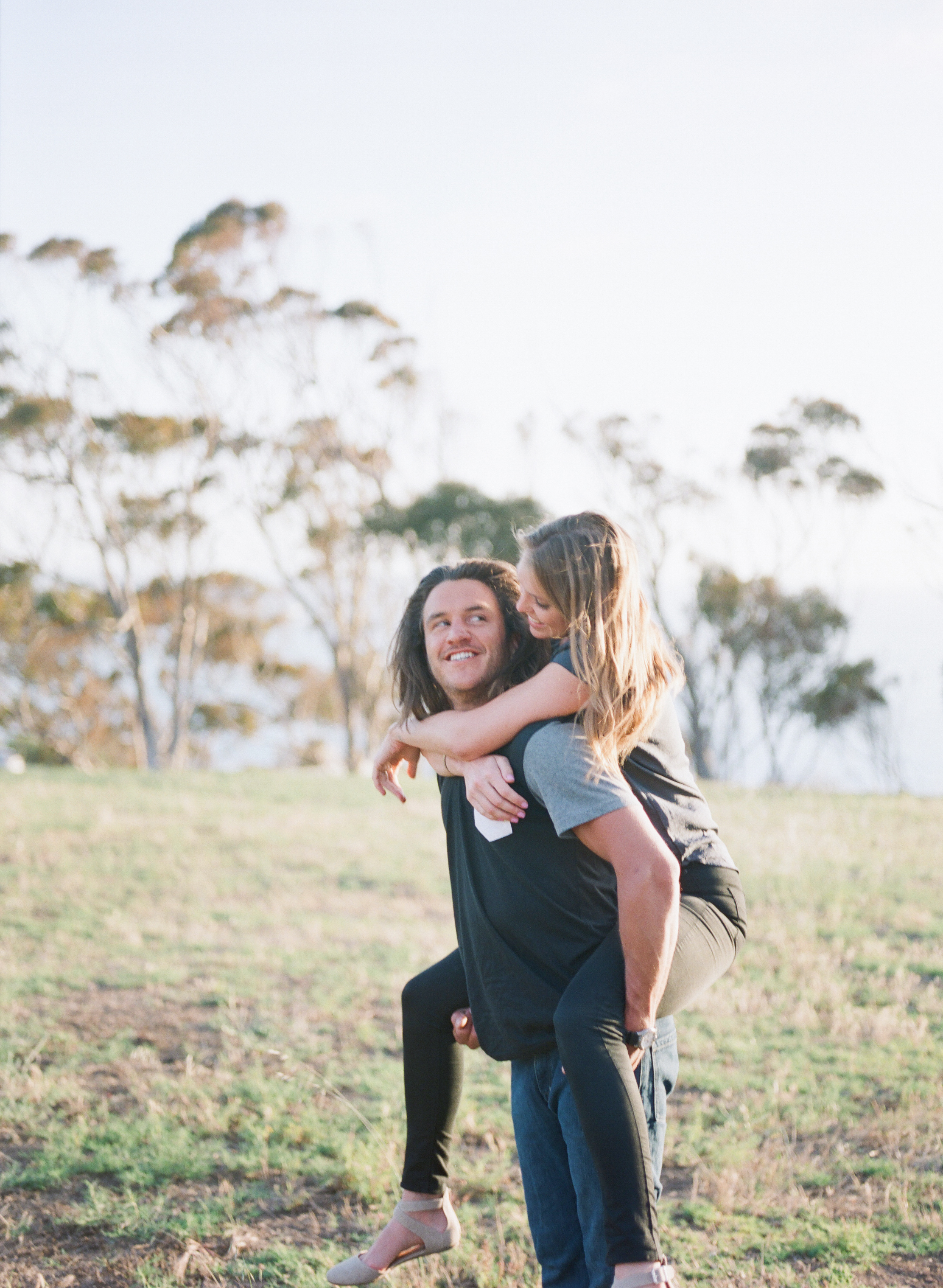 When we were originally supposed to do Katie and Brian’s engagement session, the weather decided not to be cooperative, and we got rained out! So we rescheduled for 2 weeks later, and I am so glad we did. We had the perfect setting. It was sunny and beautiful in La Jolla! Katie had told me about how Brian proposed to her on the beach, their wedding was going to be on the beach… but she didn’t want the engagement photos on the beach. So, we went up to a cliff, above Scripps Pier, and found a little forest and field. It was perfect.