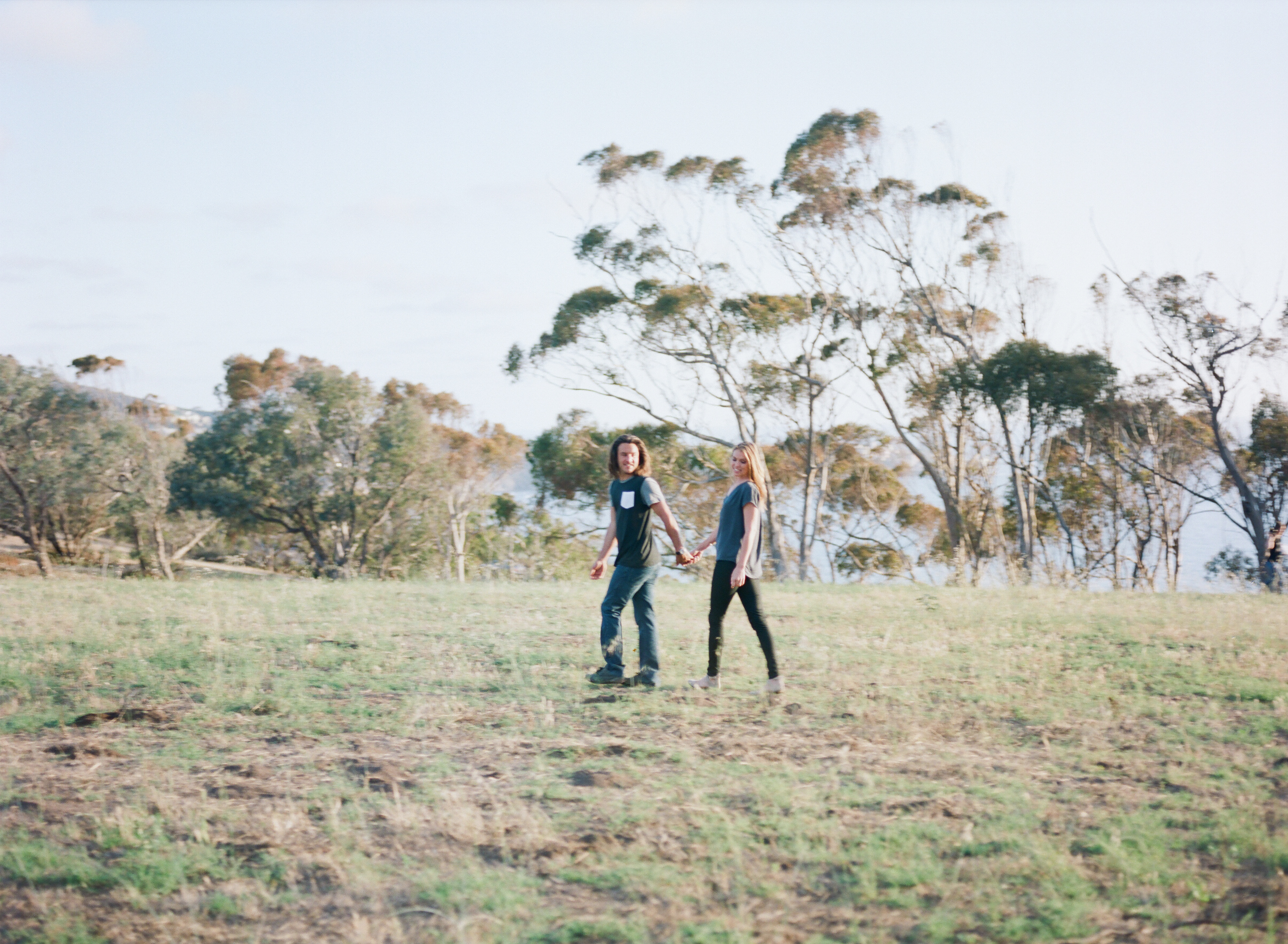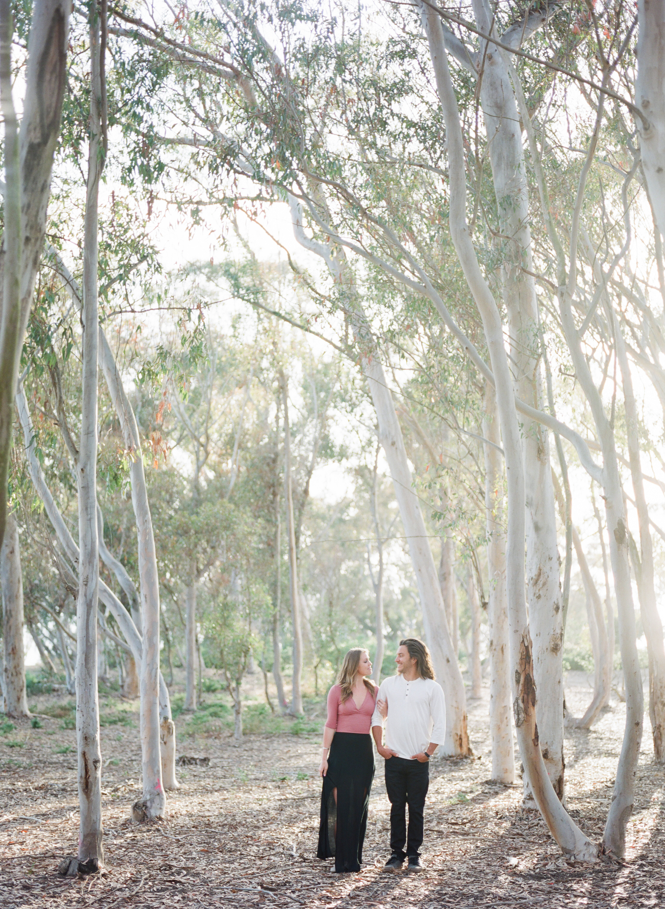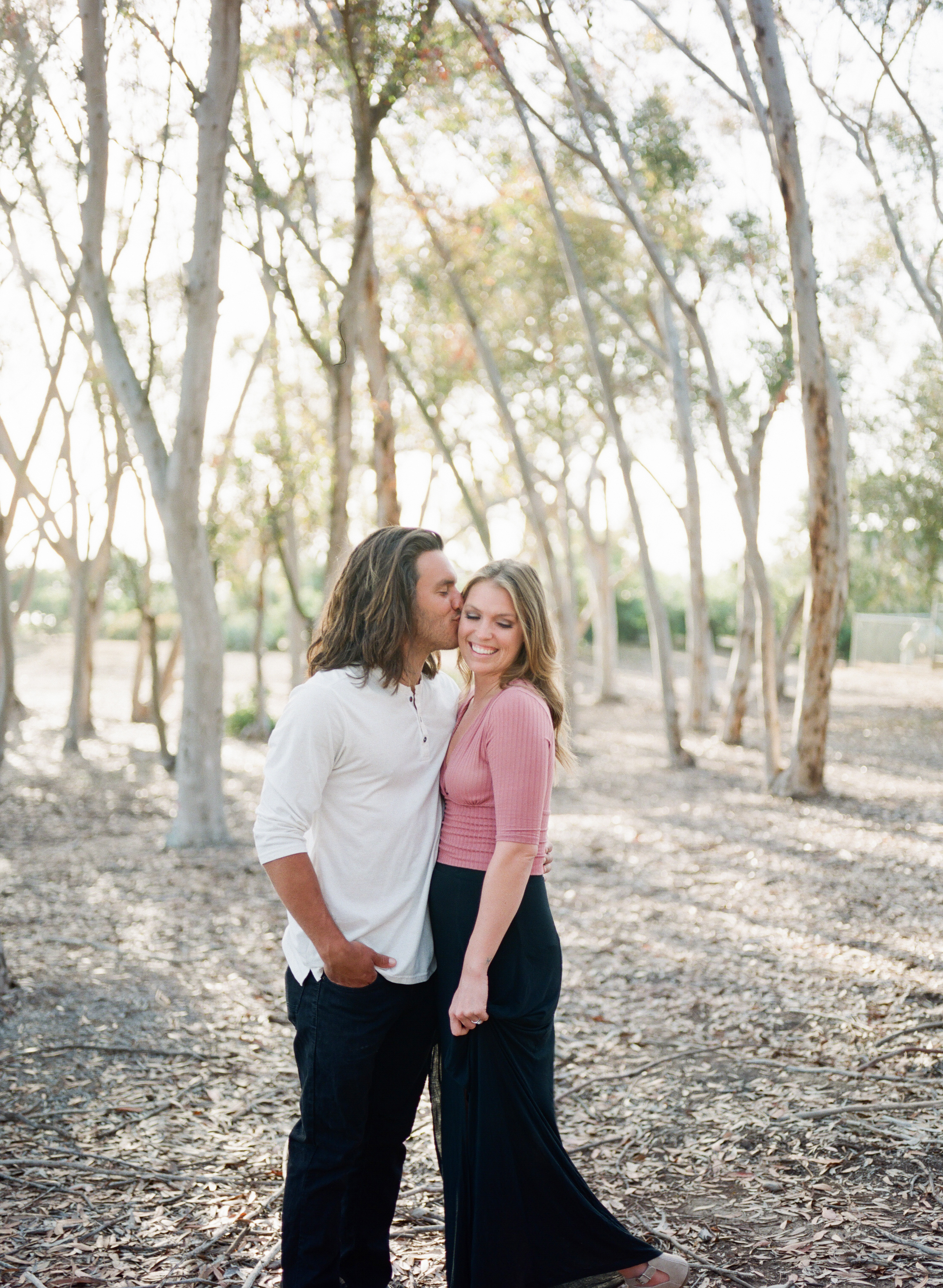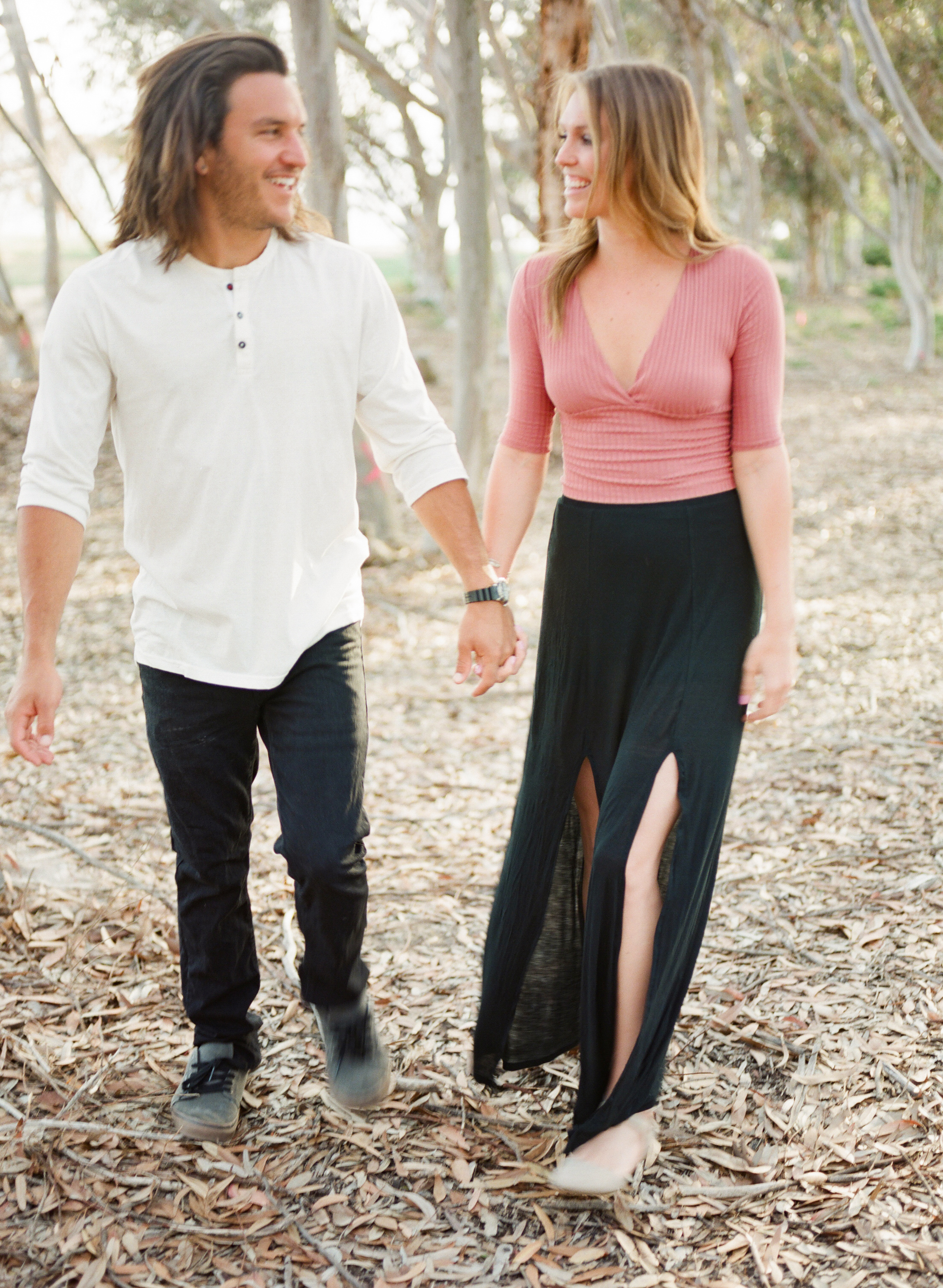 When we were originally supposed to do Katie and Brian’s engagement session, the weather decided not to be cooperative, and we got rained out! So we rescheduled for 2 weeks later, and I am so glad we did. We had the perfect setting. It was sunny and beautiful in La Jolla! Katie had told me about how Brian proposed to her on the beach, their wedding was going to be on the beach… but she didn’t want the engagement photos on the beach. So, we went up to a cliff, above Scripps Pier, and found a little forest and field. It was perfect.
